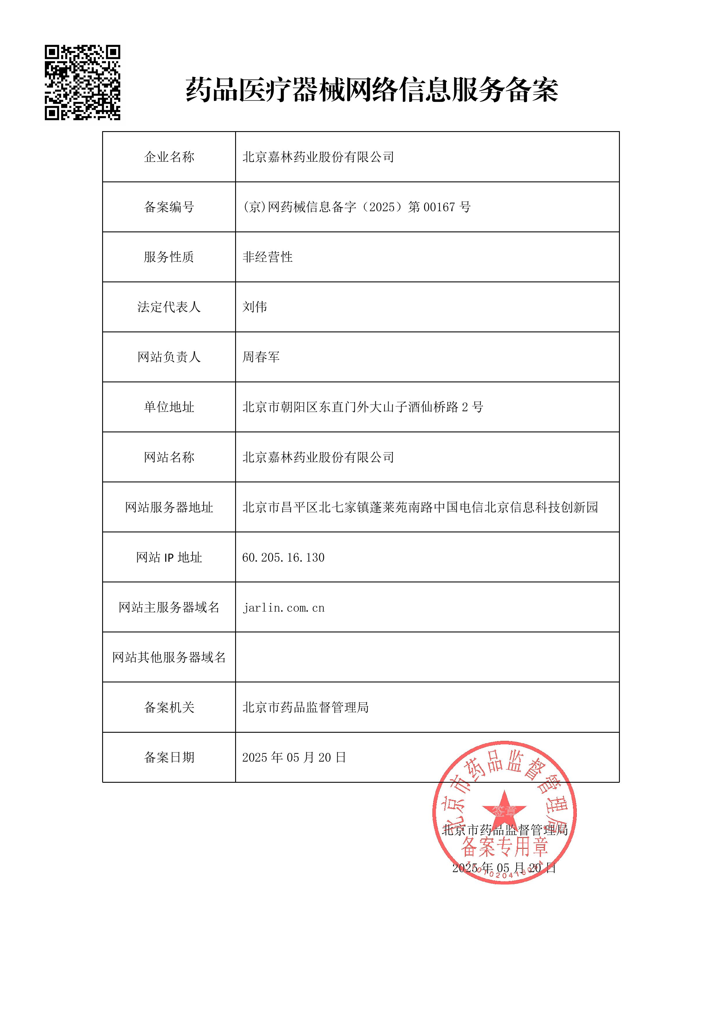 2000年12月,經北京市人民政府批準,公司進行股份制改造。2005年10月,公司名稱由北京紅惠生物制藥股份有限公司更名為北京嘉林藥業(yè)股份有限公司。