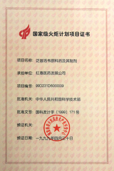• 泛昔洛韋原料藥及制劑被列入國家級火炬計劃項目