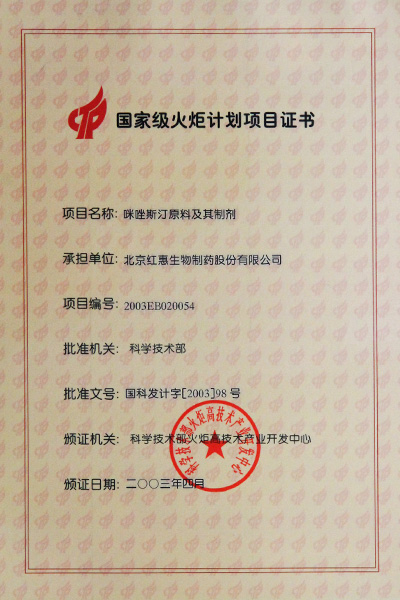 • “咪唑斯汀原料及制劑”被列入國家火炬計劃