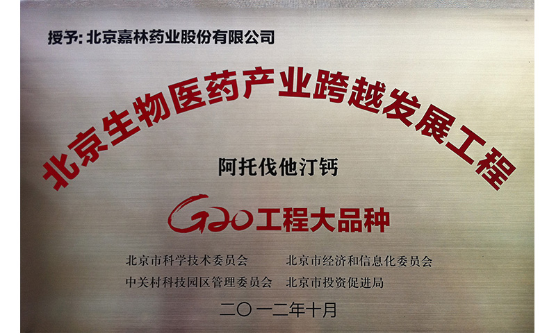 • 阿托伐他汀鈣被評為北京市生物醫(yī)藥產(chǎn)業(yè)跨越發(fā)展工程(G20工程)大品種