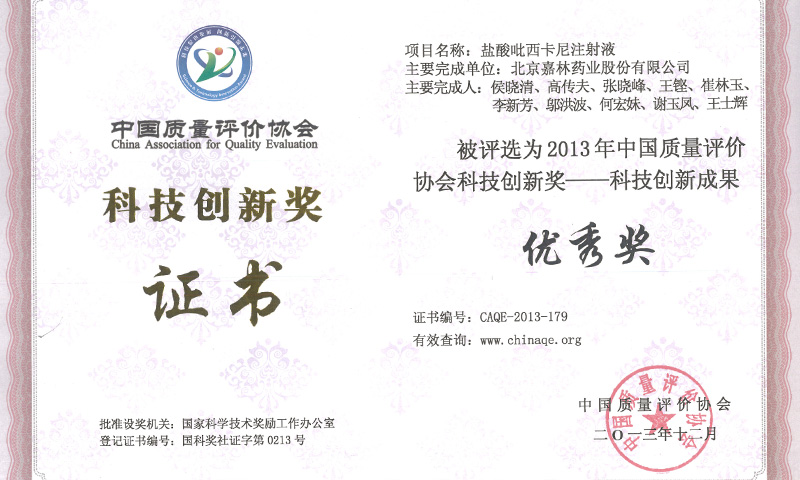 • 鹽酸吡西卡尼注射液榮獲“科技創(chuàng)新成果優(yōu)秀獎”
