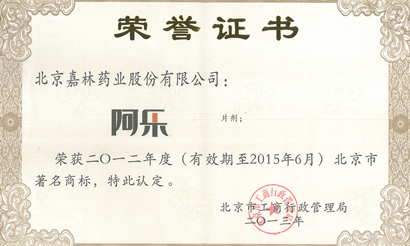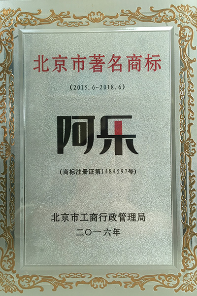 • “阿樂”獲得“北京市品牌產(chǎn)品注冊備案證書”