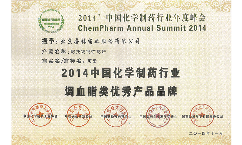 • “阿樂”列入“2014中國化學(xué)制藥行業(yè)調(diào)血脂類優(yōu)秀產(chǎn)品品牌”