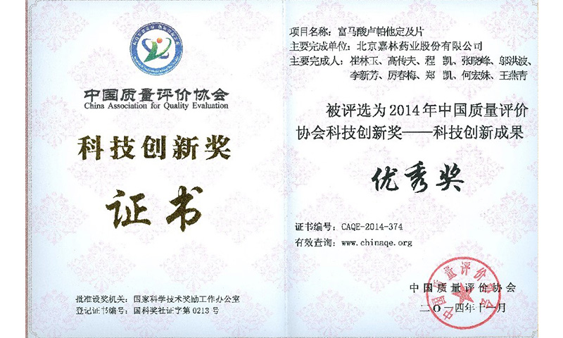 • “富馬酸盧帕他定及片” 榮獲“科技創(chuàng)新成果優(yōu)秀獎”