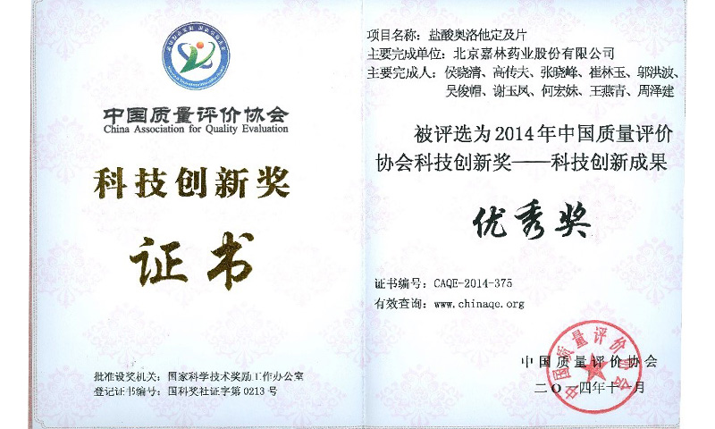 • “鹽酸奧洛他定及片”榮獲“科技創(chuàng)新成果優(yōu)秀獎”