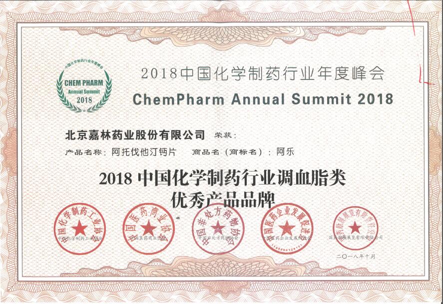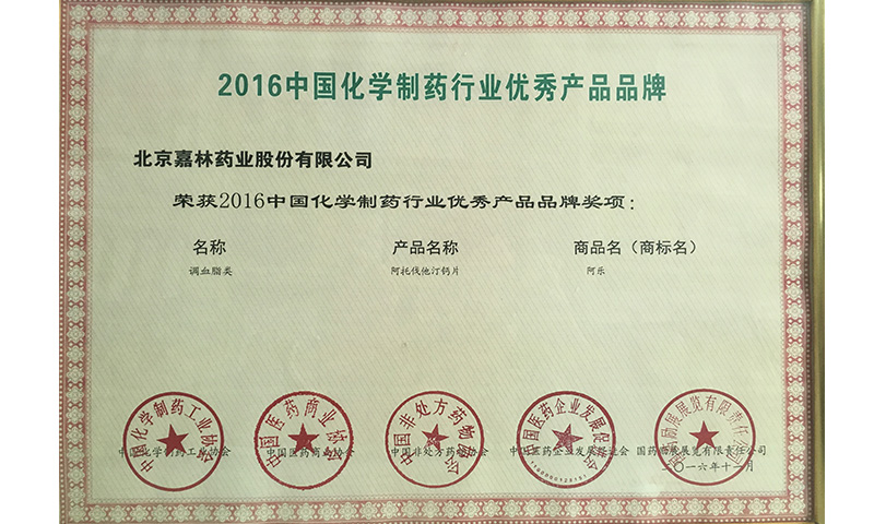 • “阿樂”被列入“2016中國化學(xué)制藥行業(yè)調(diào)血脂類優(yōu)秀產(chǎn)品品牌”