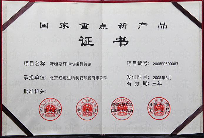 • “咪唑斯汀10mg緩釋片劑”被列入國家重點新產(chǎn)品