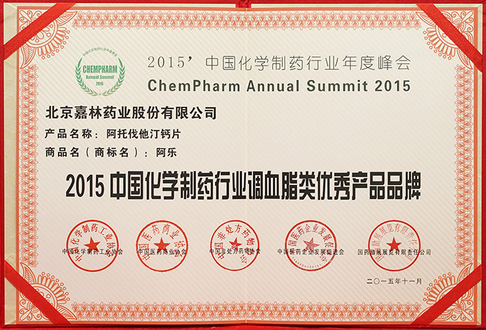 • “阿樂”被列入“2015中國化學(xué)制藥行業(yè)調(diào)血脂類優(yōu)秀產(chǎn)品品牌”