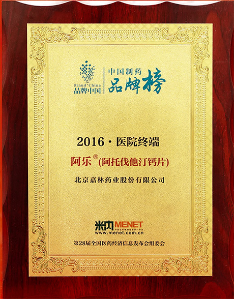 • 阿樂獲中國制藥品牌榜2016醫(yī)院終端獎