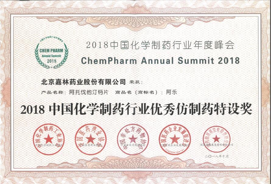 • 2018中國化學(xué)制藥行業(yè)優(yōu)秀仿制藥特設(shè)獎