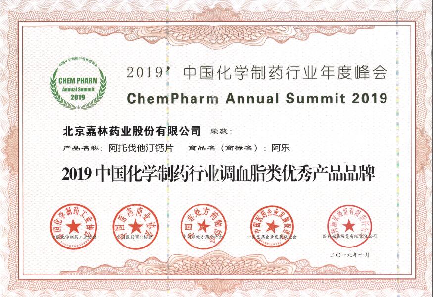 • 2019中國化學(xué)制藥行業(yè)調(diào)血脂類優(yōu)秀產(chǎn)品品牌-阿樂