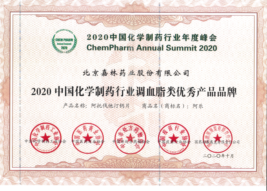 • 2020中國化學(xué)制藥行業(yè)調(diào)血脂類優(yōu)秀產(chǎn)品品牌-阿樂